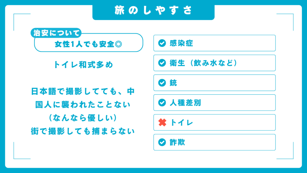 トイレが和式なこと以外は治安いいです!