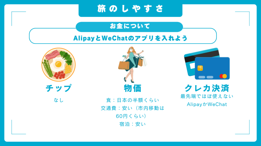 中国の成長が著しいので日本より物価が高いと思っていましたが、まだまだ中国旅行は楽しめそうです!