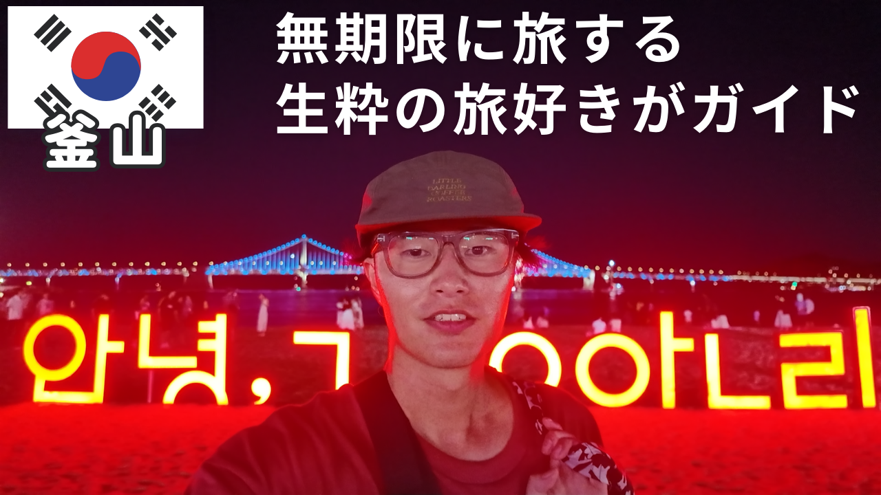 釜山旅行ガイド|観光・グルメ・アクティビティ体験記 韓国 2025.08.312025.09.16 釜山のカテゴリーへようこそ!! 無期限に世界一周をしている僕が釜山について自分が旅行前に知っておきたかった情報をまとめてみました。 現地でインターネットが使えるなら、ぜひブックマークして旅のお供にしてくださると嬉しいです。 目次 釜山旅行情報観光スポットウェルネスおしゃれカフェその他おすすめ釜山旅行動画まとめ 釜山旅行情報 観光スポット 釜山観光スポット一覧 天川文化村 168階段 海寺龍宮寺 ウェルネス 韓国サウナ「チムジルバン」 おしゃれカフェ ビーチでゆったりくつろげるカフェ【Instagram】 その他おすすめ ご当地グルメ 【自炊する方へ】おすすめスーパー/市場 【参考】旅費用まとめ 釜山旅行動画まとめ
