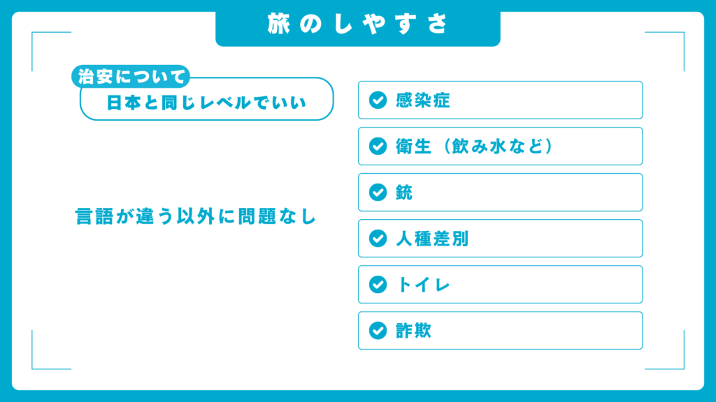 日本と同じレベルに治安がいいです!